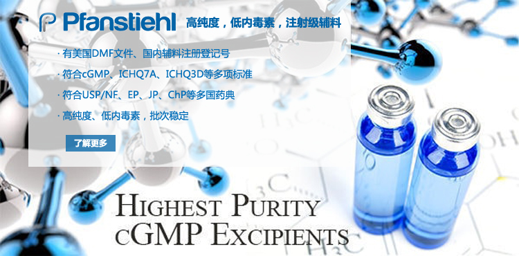 “熱烈祝賀Pfanstiehl的注射級甘氨酸Glycine(G-140)喜獲CDE登記號F20250000403, 這是Pfanstiehl產品獲得的第18個CDE登記號!”甘氨酸在醫藥輔料制劑中應用廣泛,, 可作為緩沖劑,增溶劑,穩定劑等,具有諸多優勢。Pfanstiehl秉承一貫高品質理念,為滿足全球生物制藥行業對于高品質甘氨酸的需求,隆重推出的注射級甘氨酸Glycine (G-140), 具有超高純度,超低內毒素,超低金屬殘留的特點,單獨檢測29種金屬離子,并且新增DNA,RNA,DNA酶,RNA酶和脂肪酶,亞硝酸鹽等多項質量指標的檢測,符合多國藥典規定(USP, EP, BP, JPE, ChP),可用于生物治療性藥物和疫苗的生產。產品信息:· 產品名稱:Glycine, High Purity, Low Endotoxin, Low Metals, USP, EP, BP, JPE, ChP (G-140)· 中文名稱:甘氨酸· 分子式:C2H5NO2· 分子量:75.07 g / mol· CAS號:56-40-6· 產品貨號:G-140產品特點: · 超高純度,超低內毒素,超低微生物含量,超低金屬雜質殘留· 質量指標新增DNA,RNA,DNA酶,RNA酶,脂肪酶和亞硝酸鹽檢測· 符合多國藥典:USP, EP, BP, JPE, ChP· 符合ICH Q3D標準· 符合GMP標準· 已獲DMF和CDE登記號 產品應用:· 緩沖劑· 穩定劑· 增溶劑如果您對Pfanstiehl注射級別Glycine G-140感興趣,歡迎聯系Pfanstiehl 中國區代理商北京西美杰科技有限公司獲得如下詳細的產品概況說明文件和測試樣品。Pfanstiehl Inc.最新產品系列如下,歡迎聯系北京西美杰科技有限公司獲取100g裝免費樣品。北京西美杰科技有限公司為Pfanstiehl中國代理,為客戶提供完善的技術支持與售后服務。歡迎撥打西美杰客服電話400-050-4006或者登陸網站www_xmjsci_com.3dolxa.cn了解更多信息。 更多>